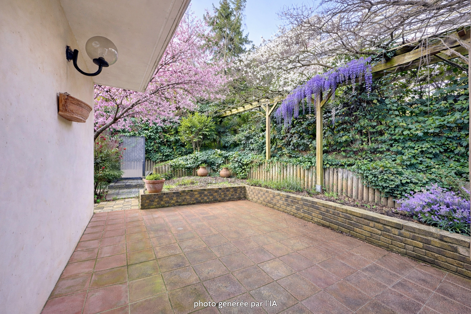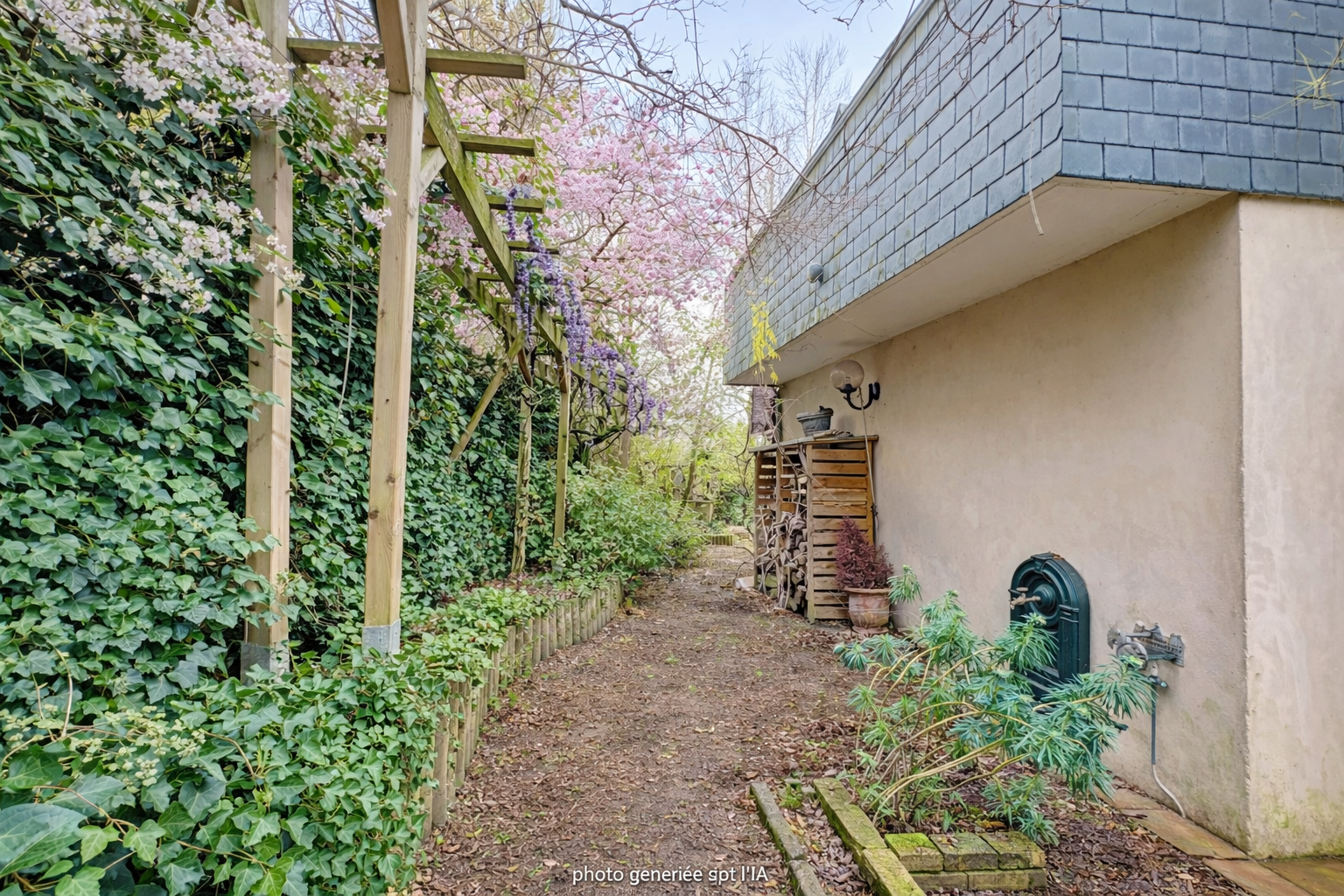 Jardin autour de la maison. Possibilité d'acheter la parcelle contigue au terrain de 120M² supplémentaires.